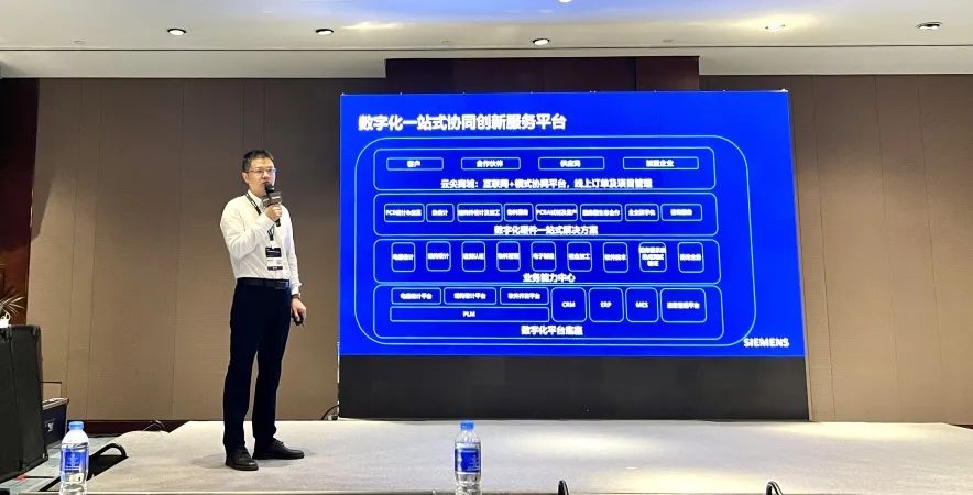 西門子全球高級副總裁兼大中華區董事總經理梁乃明為大會做開場致辭。云尖信息技術服務部總監楊光景受邀于現場做主題演講,與眾多國內外知名專家及行業翹楚共商數字化轉型解決方案、分享云尖數字化一站式硬件協同創新服務平臺戰略。