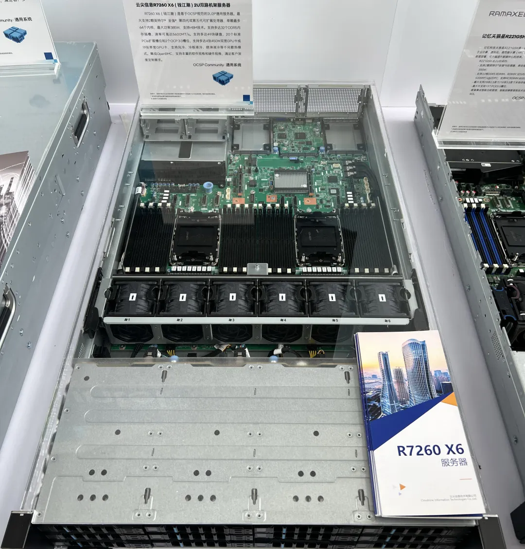 云尖信息在本次大會上展示的“錢江潮”R7260 X6服務器,以其卓越的性能和靈活的配置贏得了廣泛關注。該服務器基于英特爾®至強®第四代或第五代可擴展處理器,支持8通道5600MT/s DDR5內存技術,提供高達50%的帶寬提升。通過22個PCIe插槽和多達49個硬盤插槽的支持,R7260 X6能夠輕松應對大數據、地質勘探、AI訓練推理、動態工作負載及高密度數據中心等多種企業需求,為企業數字化轉型提供了強有力的支撐。